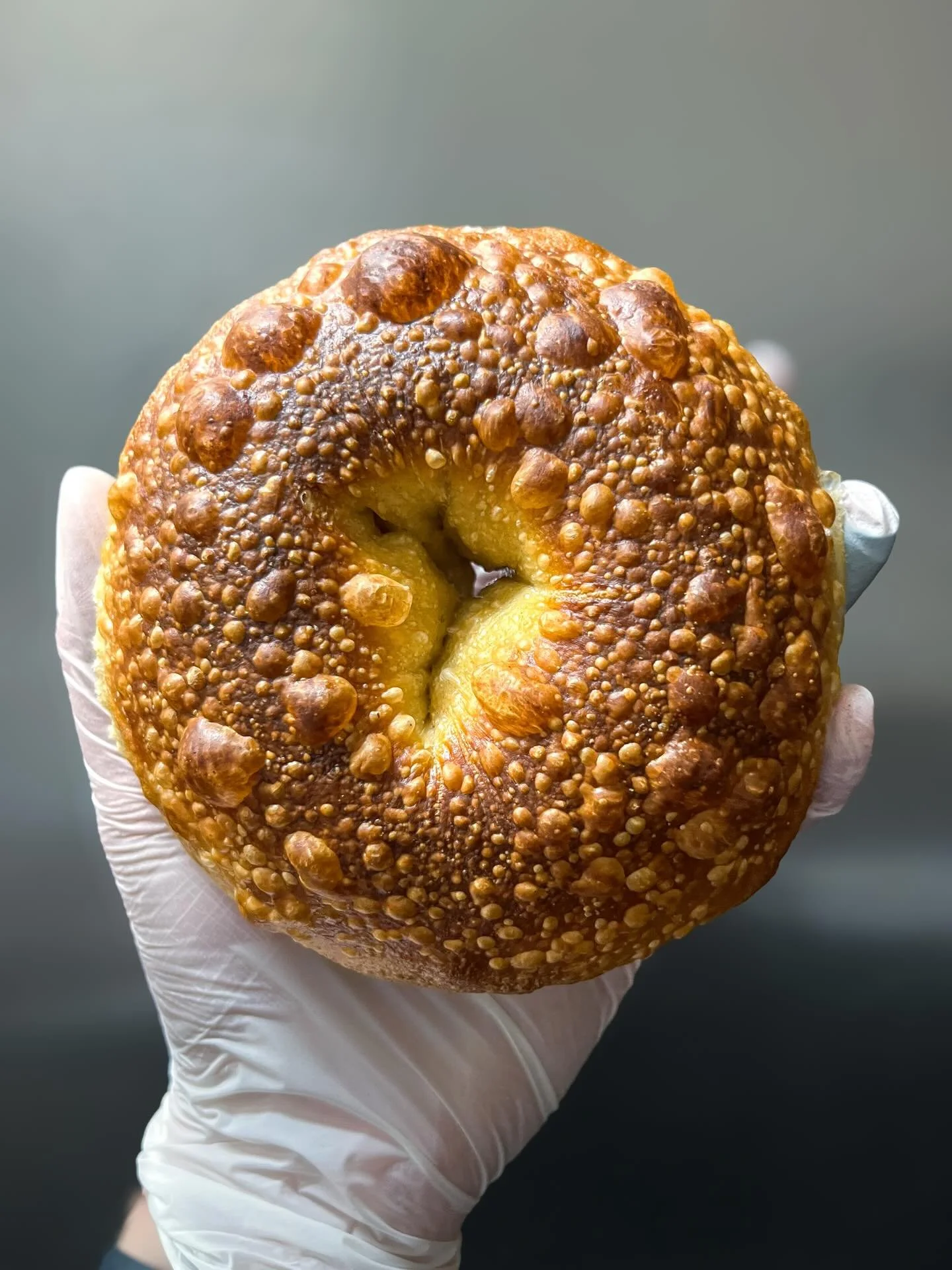 View fullsize Our hand-laminated vegan croissant, lye-dipped and topped with our house everything seasoning.